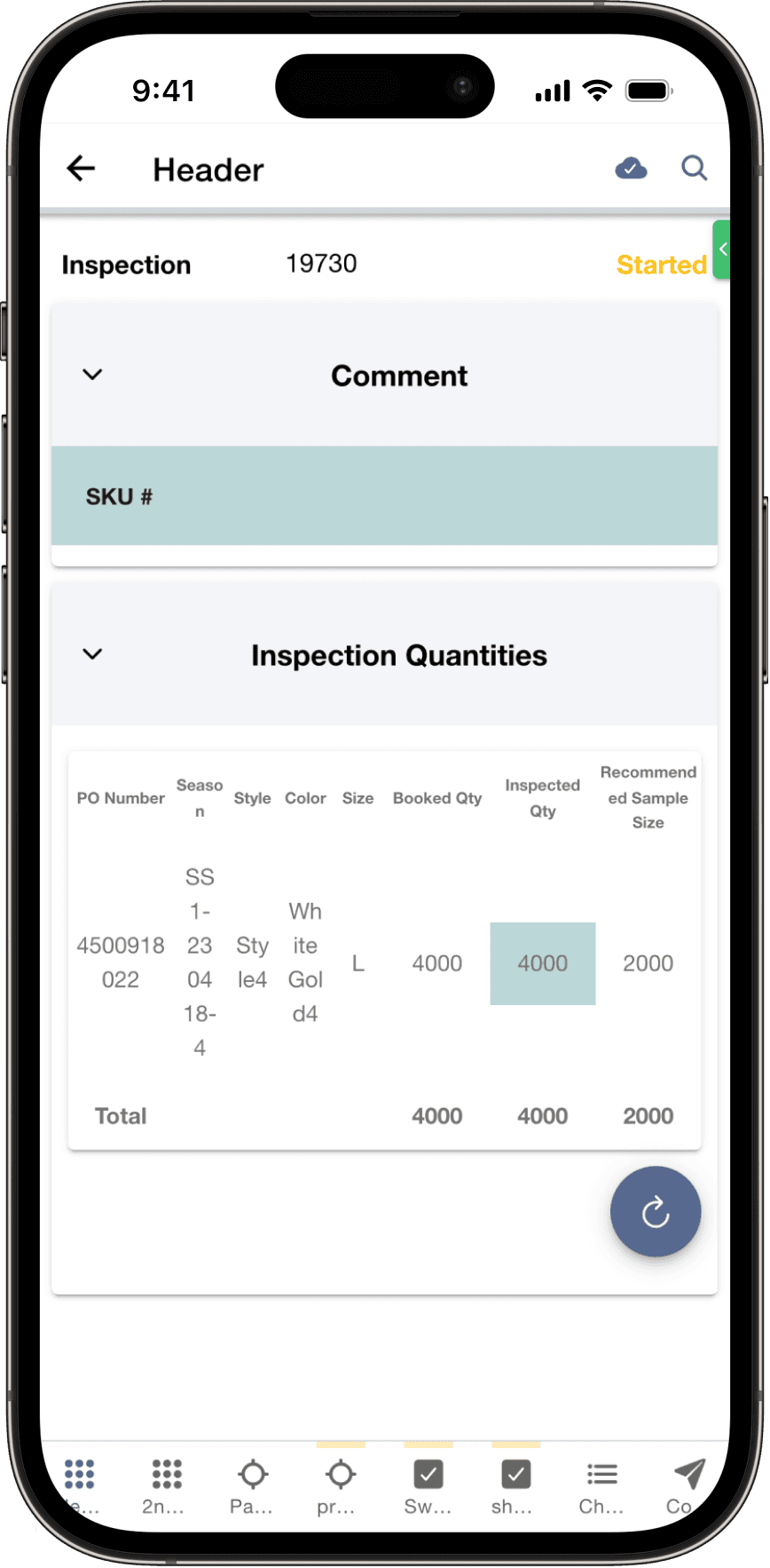 During the inspection, inspector needs to log the measurement of the product at different POM (Point of Measurement). For instance, the inspector might need to check the sleeve length or the shoulder width of a T-shirt. To do so, they first click on the cell of the POM they are measuring, an overlay will appear with the target value inputted. Then they can either change the value by clicking the "-" & "+" or click the arrow to move on to next cell.
